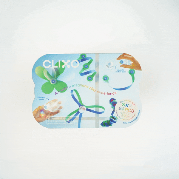 Este paquete contiene 24 piezas en 10 formas únicas de Clixo, incluyendo accesorios de ventosa.