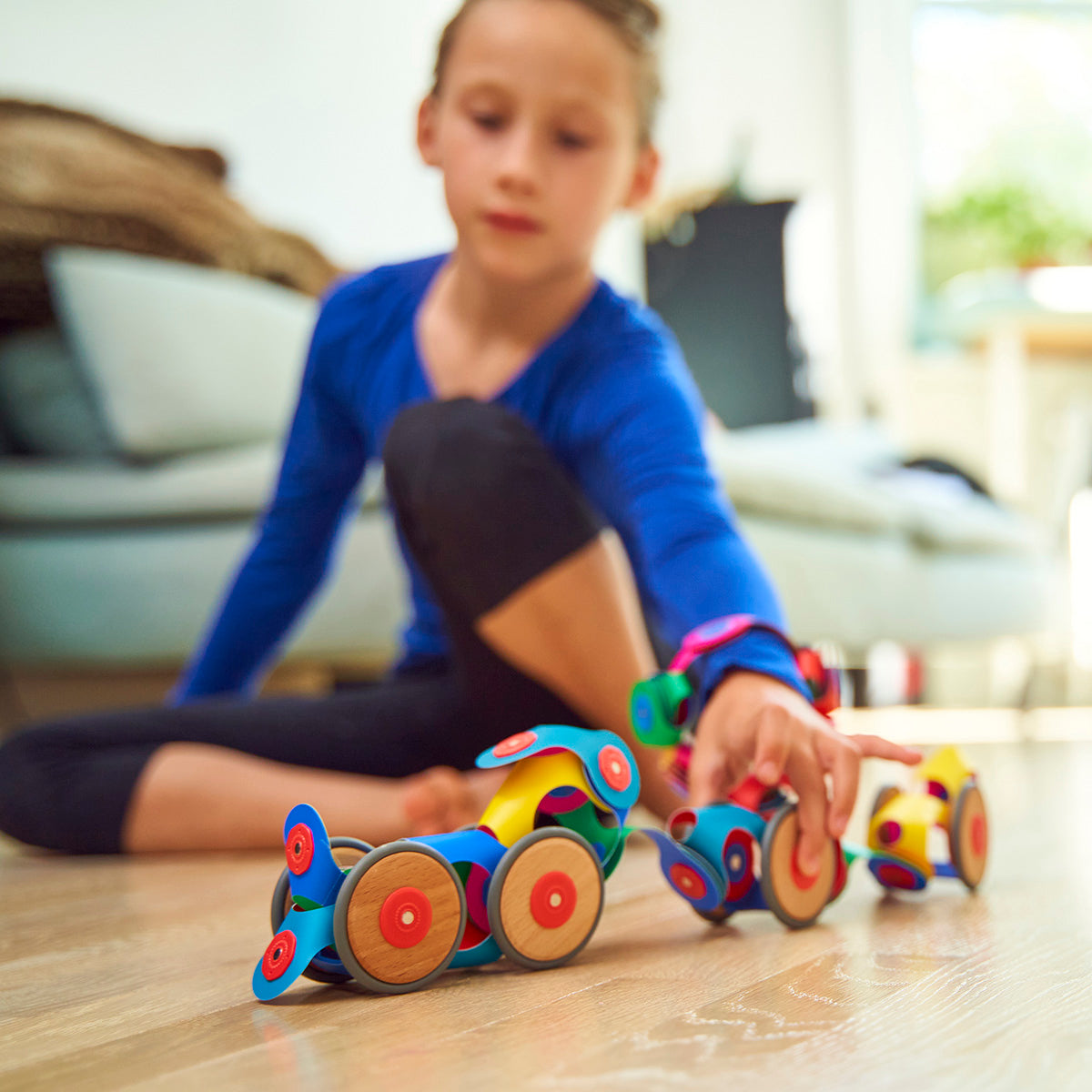 Partes flexibles y coloridas inspiran nuevas ideas, mientras que los accesorios de ruedas y soportes amplían las opciones de creación.